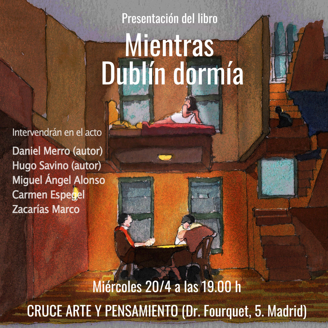 Presentación en Cruce del libro Mientras Dublín dormía, de Daniel Merro y Hugo Savino, el 20 de abril de 2022